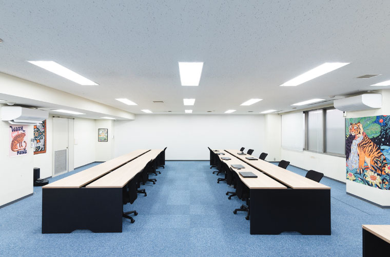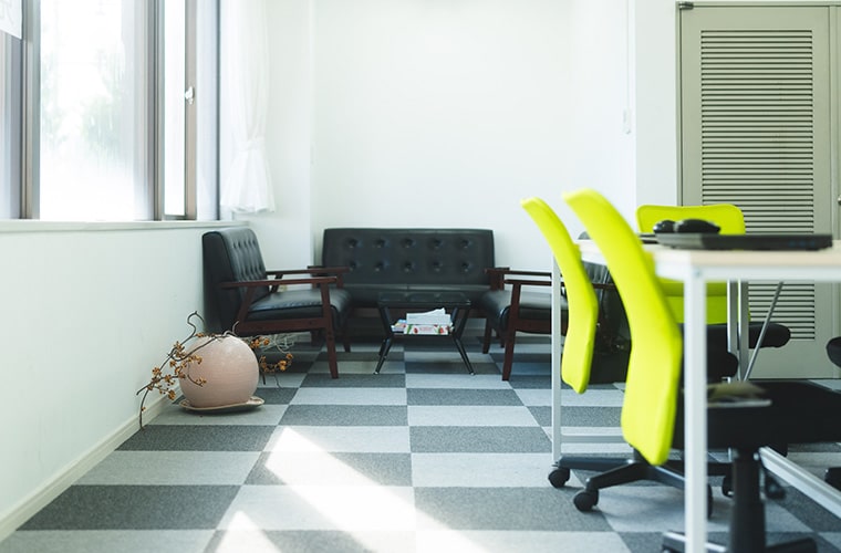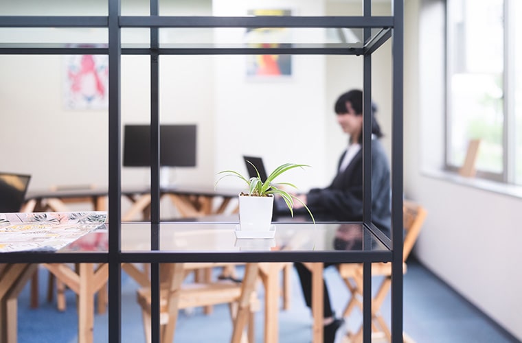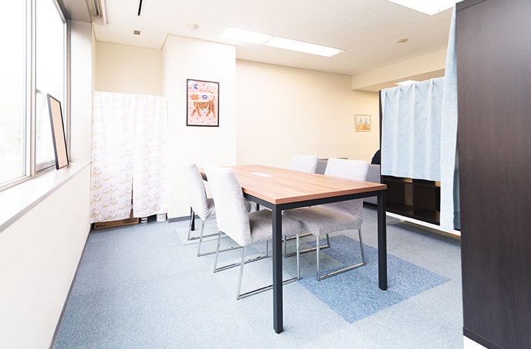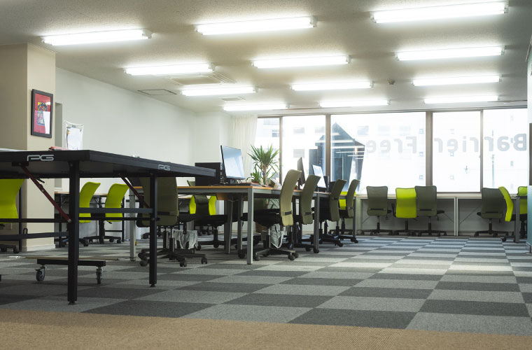 山王十字路前でバスのアクセスが良好です。デザインやSNS運用等のクリエイティブ業務が多い他、食肉工場の事業所外就労業務も行なっております。